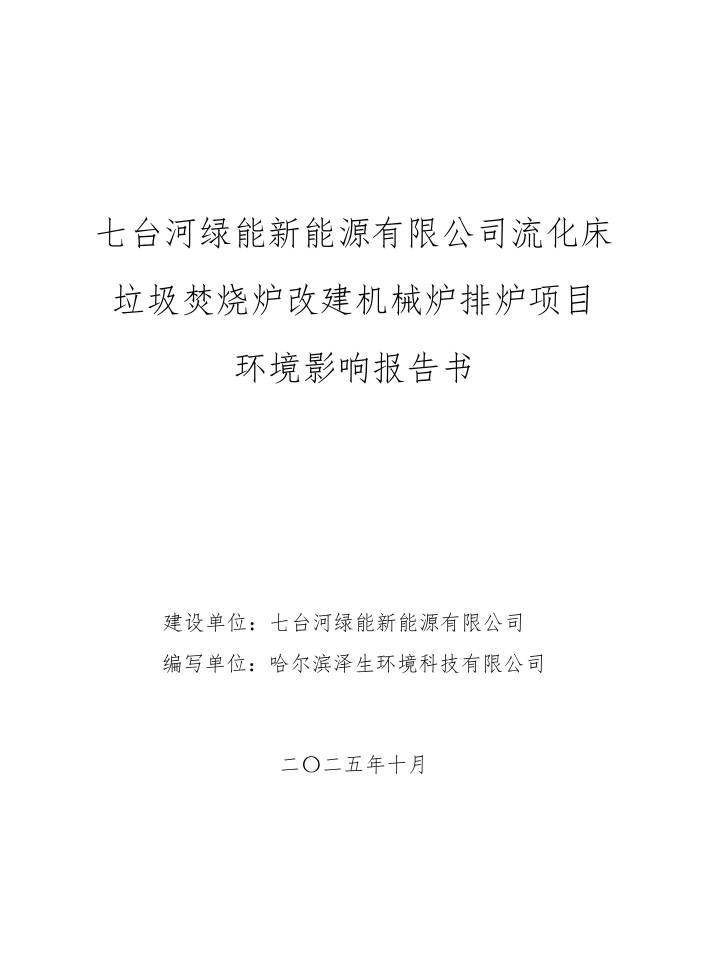 七臺河綠能新能源有限公司流化床垃圾焚燒爐改建機(jī)械爐排爐項(xiàng)目環(huán)境影響報(bào)告書報(bào)批前公示