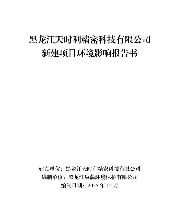 黑龍江天時利精密科技有限公司新建項(xiàng)目環(huán)境影響報(bào)告書及公眾參與說明